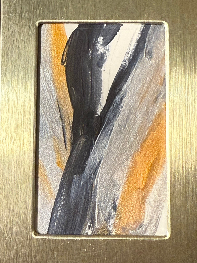 Dramatic is a Wee painting. Acrylic on paper and framed in a metal frame. 2 1/2"x 3 i/2" therefore it's a Wee painting created on YouTube!